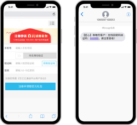 新用户在网页、APP注册时通过手机号码验证用户真实身份,杜绝恶意注册,确保用户有效性!